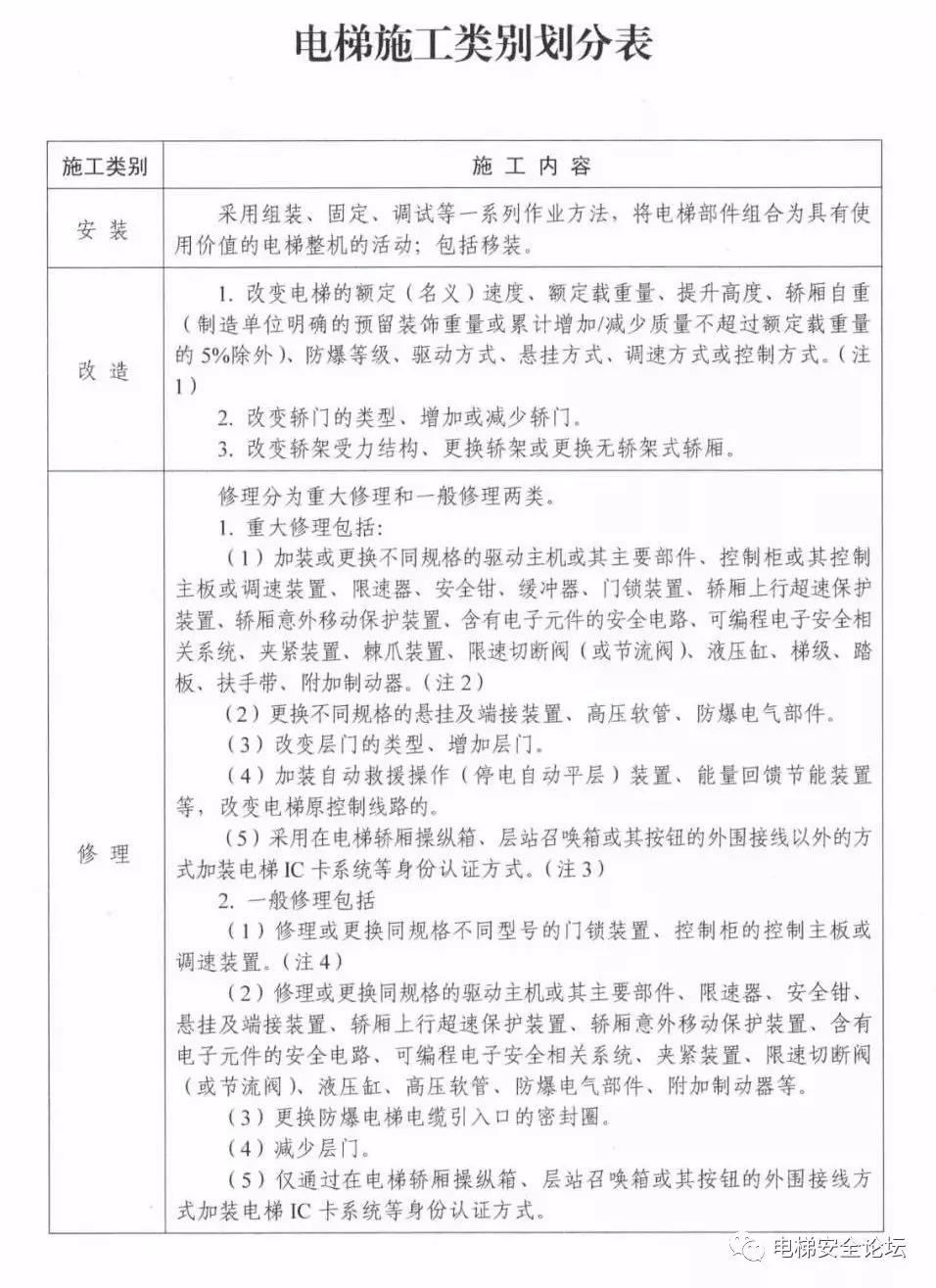 2.将原改造内容进行大幅度下放调整为重大修理项目,仅保留“改变九游(中国)的额定(名义)速度、额定载重量、提升高度、轿厢自重(制造单位明确的预留装饰重量除外)、防爆等级、驱动方式、悬挂方式、调速方式以及控制方式”和“改变轿门的类型、增加或减少轿门”部分。根据《特种设备生产单位许可目录》调整情况,改造能力要求与制造能力要求相同,但是对于确实可以由施工单位进行的工作,调整为修理项目后,一方面保证可以由施工单位进行的施工内容仍然交给施工单位,另外一方面,对于重要施工内容可以通过检验来考核施工质量。